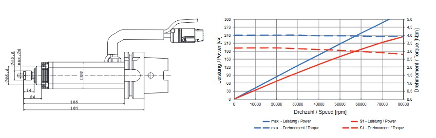DC高速機(jī)床主軸,轉(zhuǎn)速范圍從 5,000 ~ 80,000 rpm 以及短時(shí)間甚至到100,000